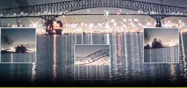 The Francis Scott Key Bridge in Baltimore, Maryland which crosses the Patapsco River has reportedly Collapsed within the last few minutes after being Struck by a Large Container Ship; a Mass Casualty Incident has been Declared with over a Dozen Cars and many Individuals said to… pic.twitter.com/SsPMU8Mjph